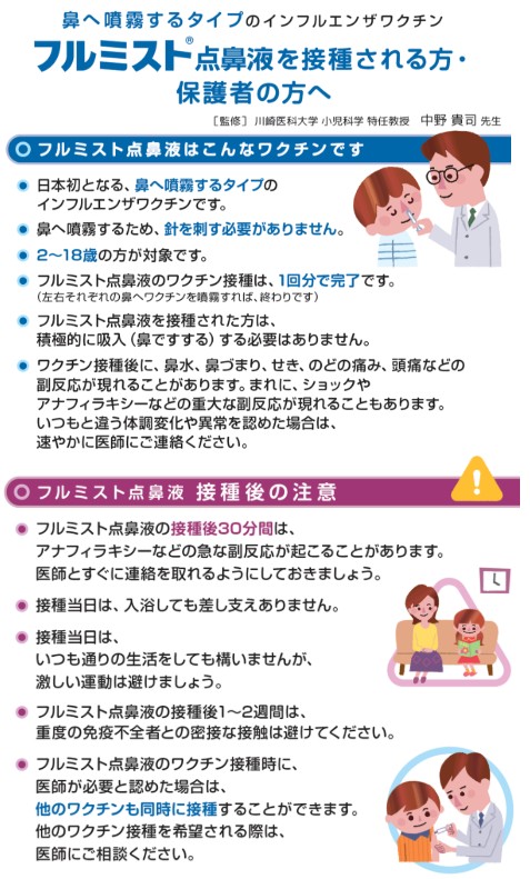 注射なしの「点鼻」インフルワクチン「フルミスト®」の提供開始(13~18歳のみ)、板橋区助成金あり